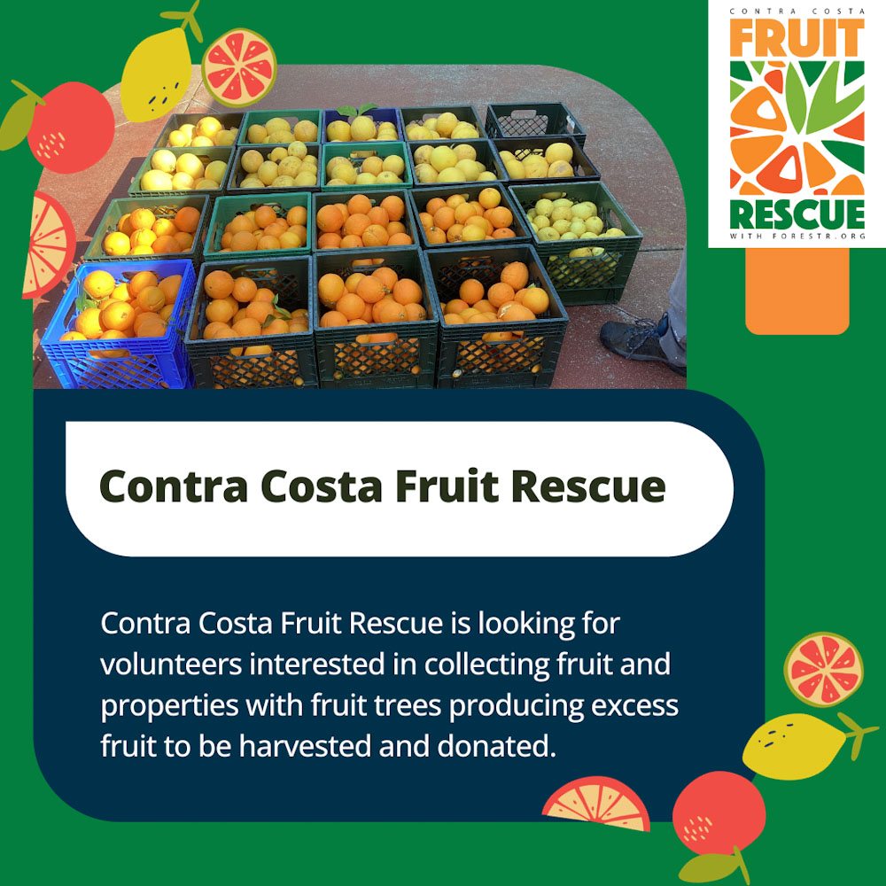 Contra Costa Fruit Rescue (CCFR) is looking for property owners in Contra Costa County with fruit trees that they are willing to donate to their program. They harvest fruit from these trees and donate it to local food banks and social service agencies, where it is distributed to people in need.