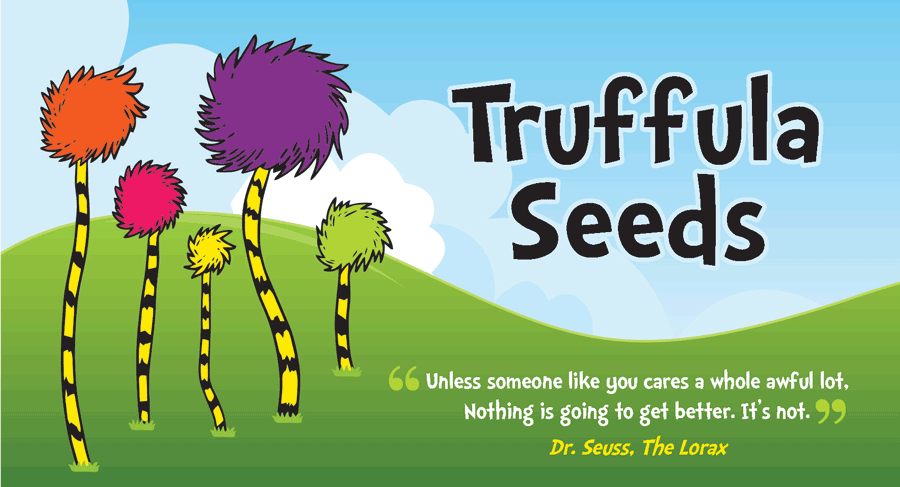 The Truffula “seeds” are actually Nerds candy pieces - a little 4th of July fun. This combination of sweet treats and thought-provoking words aims to engage parade attendees, particularly children, in a memorable and impactful way.
